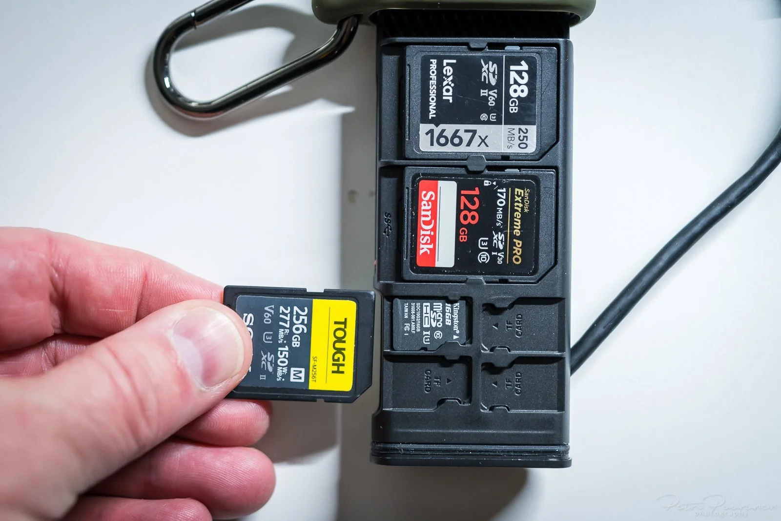 A common problem for datahorder like me who shoots a lot and with many devices, travels around and works a lot remotely is not to lost them. So far cards has been stored in their small cases which then are in dedicated pouch etc. Not so easy task and sometimes stuff just get lost.